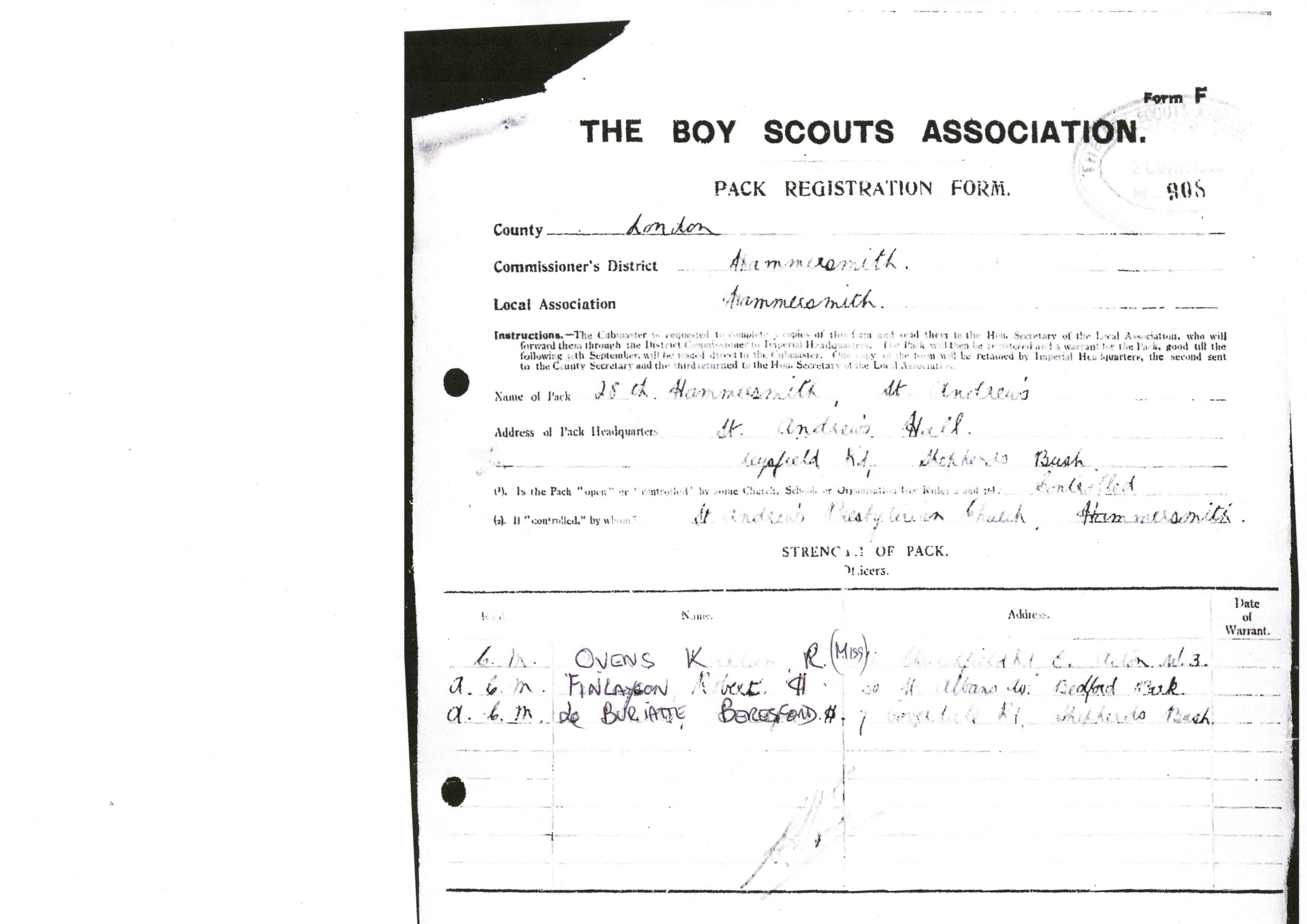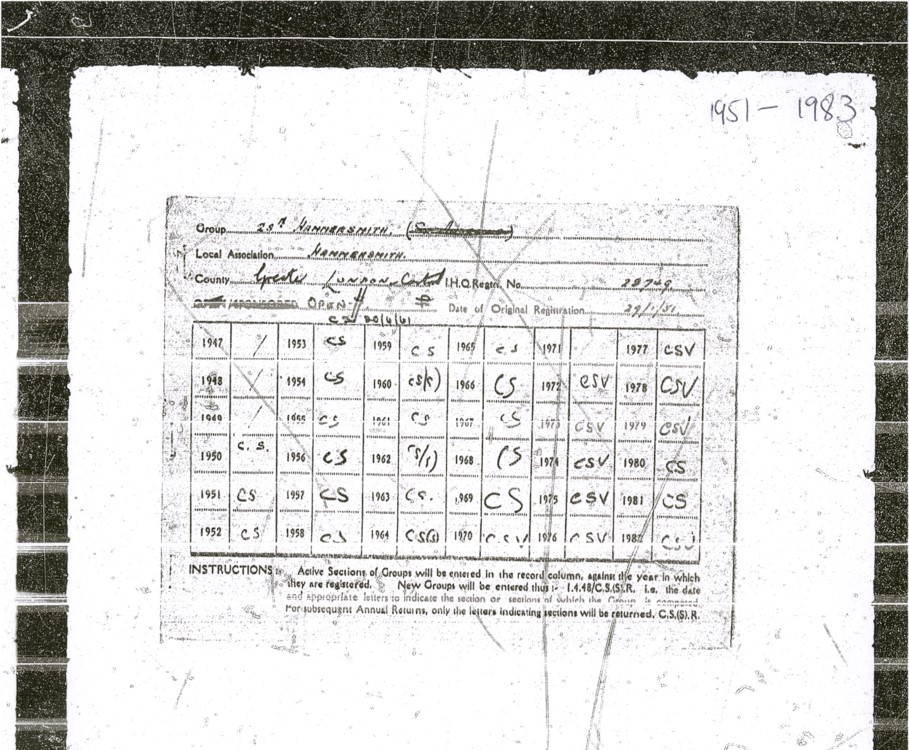The name of the group at its inception was 28th Hammersmith (St Andrews) and it was registered as a church sponsored group.